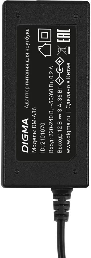 | Комплектация | Адаптер питания для ноутбука Digma DM-A36, Набор сменных штекеров (3 шт.), Руководство пользователя |