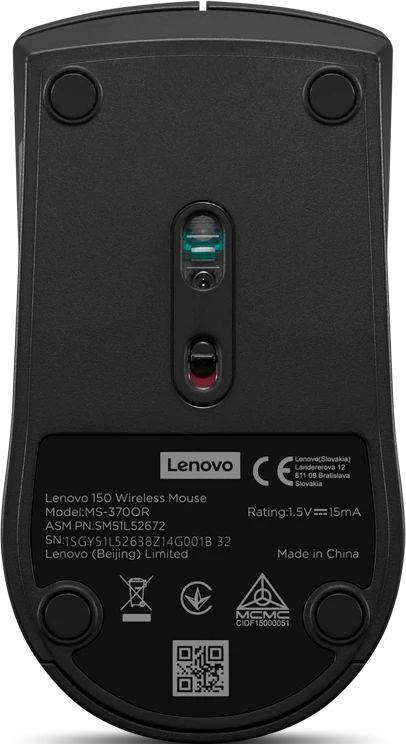 Мышь Lenovo 150 Wireless черный оптическая 1000dpi беспров. USB 2but (GY51L52638)