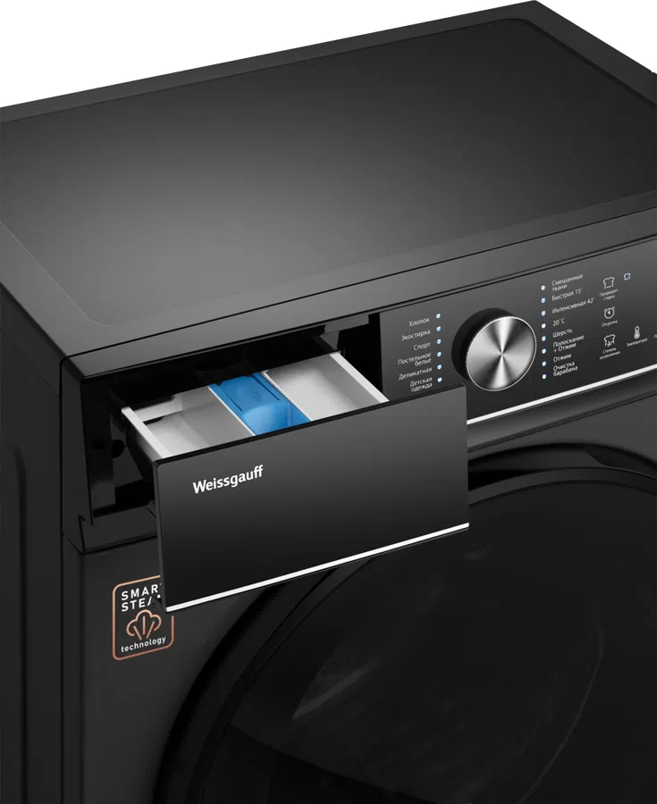 | Программы (полное описание) | Хлопок, Экостирка, Спорт, Постельное белье, Деликатная, Детская одежда, Турбо стирка, Стирка с паром, Смешанные ткани, Быстрая 15', Быстрая 42', 20 °C, Шерсть, Полоскание+ отжим, Отжим, Очистка барабана |