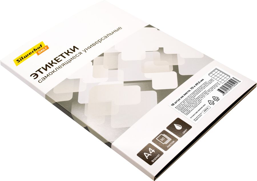Этикетки Silwerhof A4 70x49.5мм 18шт на листе/50л./белый матовое самоклей. универсальная