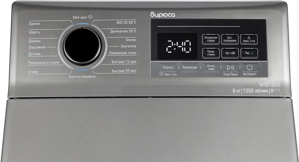 Стиральная машина Бирюса WM-MT813/05 M класс: A+++ загр.вертикальная макс.:8кг серебристый инвертор