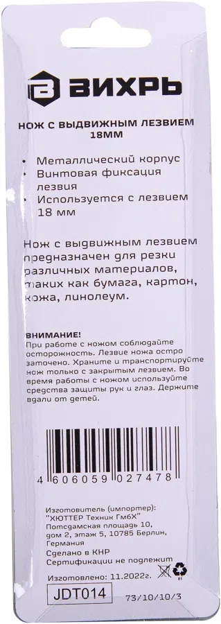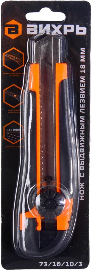 Нож строит. Вихрь 18мм лезв.1шт оранжевый/черный (73/10/10/3)