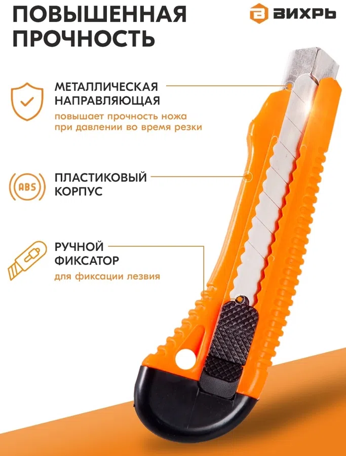 Нож строит. Вихрь 18мм лезв.1шт оранжевый/черный (73/10/10/2)