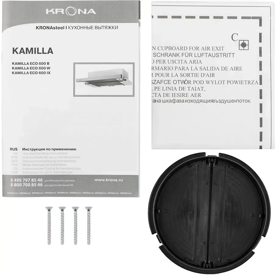 Вытяжка встраиваемая Krona Kamilla ECO 600 IX нержавеющая сталь/белый управление: кнопочное (1 мотор)