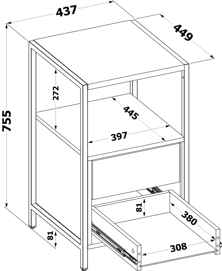 Тумба Сокол КТ-400 приставная 437x449x755мм дуб сонома (00-00016108)