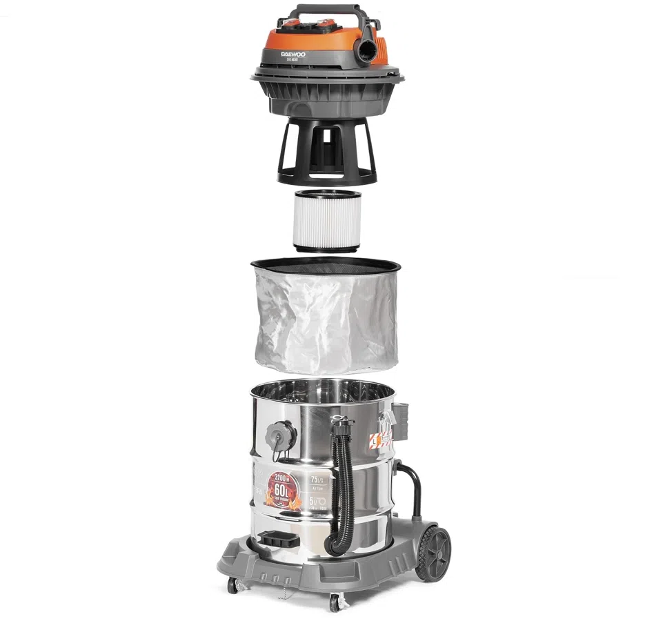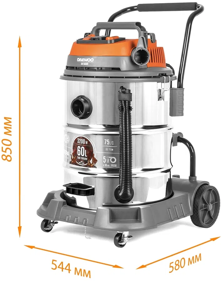 Строительный пылесос Daewoo DAVC 2500SD 1400Вт (уборка: сухая/влажная/выдув/сбор воды) оранжевый