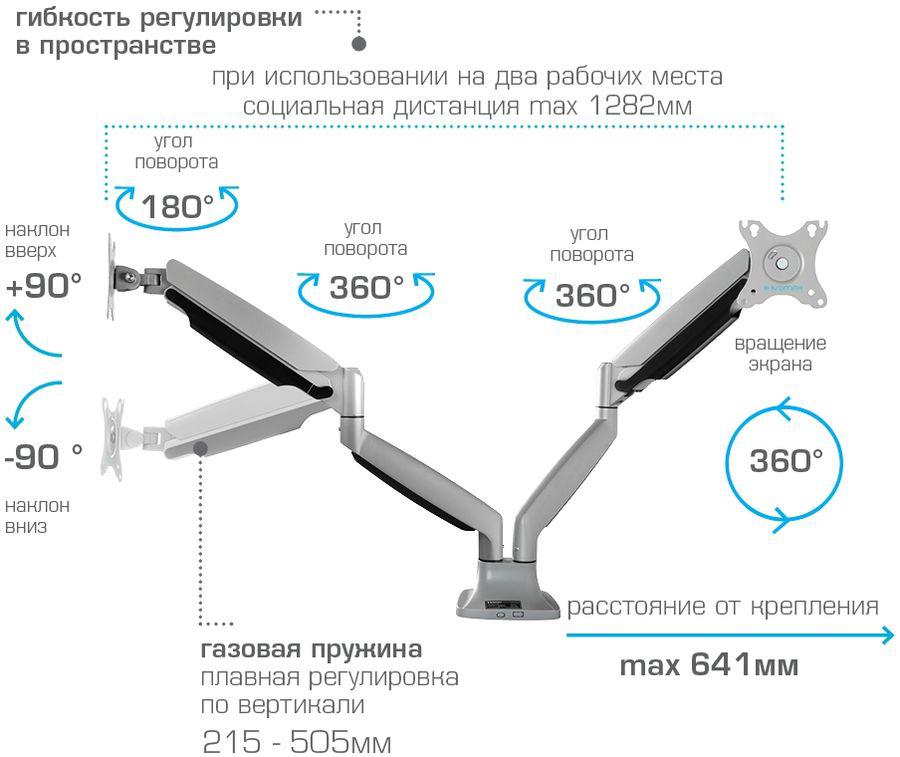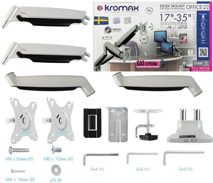 Кронштейн для мониторов ЖК Kromax OFFICE-22 серебристый 17"-35" макс.15кг настольный поворот и наклон