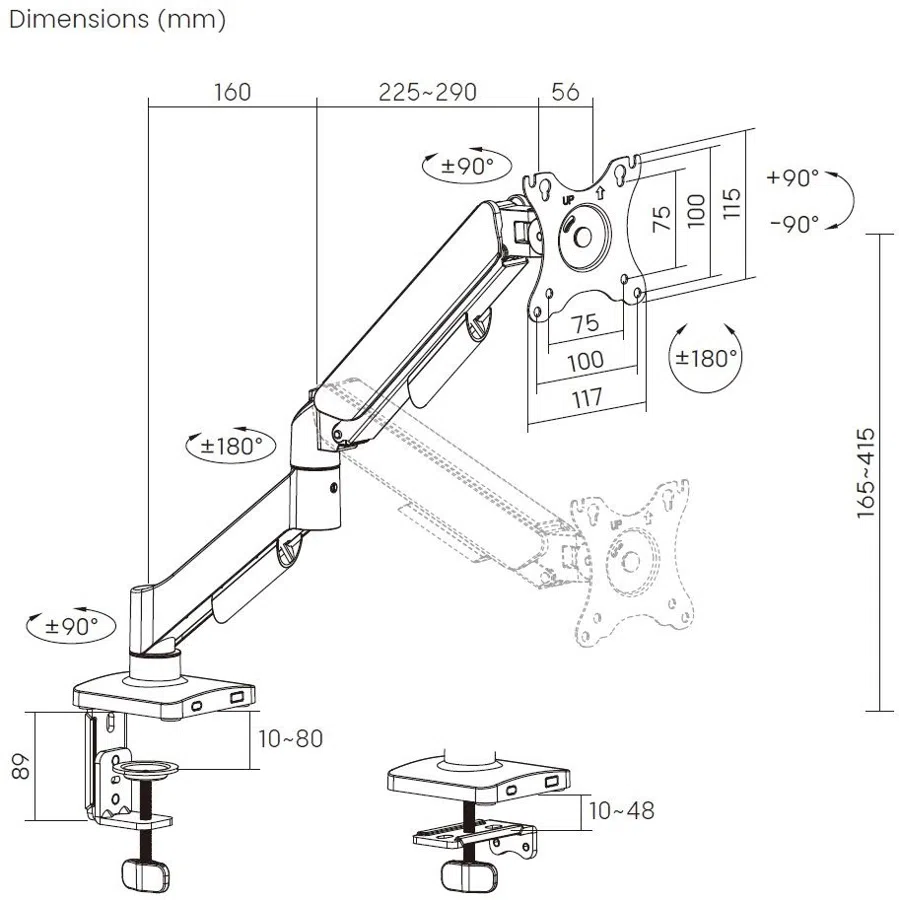 | Описание | Механическая пружина. В комплекте два вида крепления к столу. руеомендуемая толщина стола для использования зажима 10-80 мм, для люверса - 10-48 мм. |