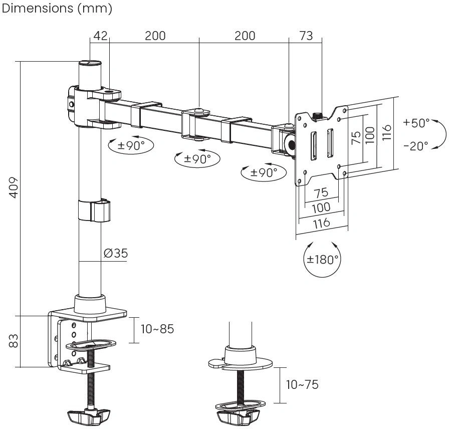 | Поддержка крепления VESA | 100x100, 75x75 |