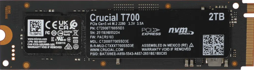 Накопитель SSD Crucial PCIe 5.0 x4 2TB CT2000T700SSD3 T700 M.2 2280