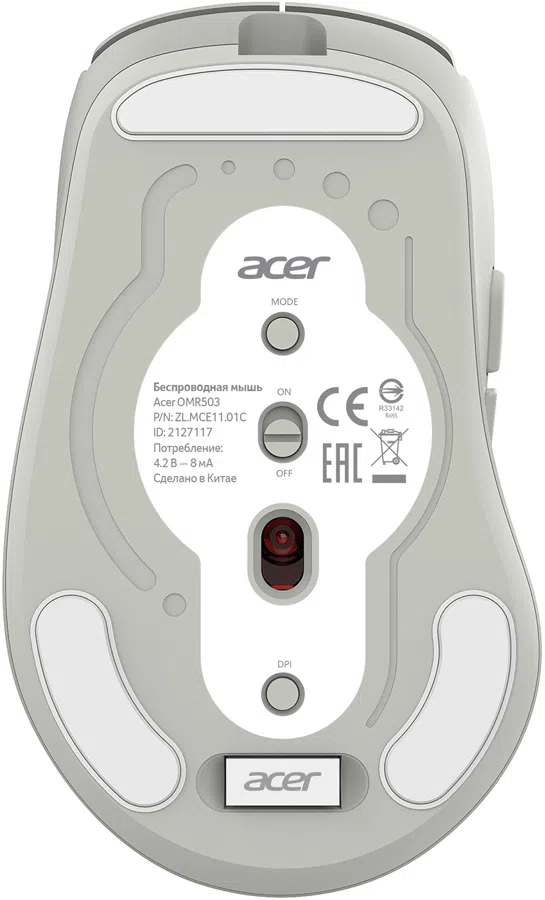 Мышь Acer OMR503 светло-серый оптическая 3200dpi silent беспров. BT/Radio USB 4but (ZL.MCE11.01C)