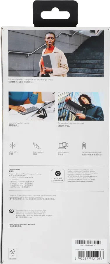 Клавиатура Logitech Keys-To-Go 2 графитовый/черный беспроводная BT slim Multimedia для ноутбука (920-012999)