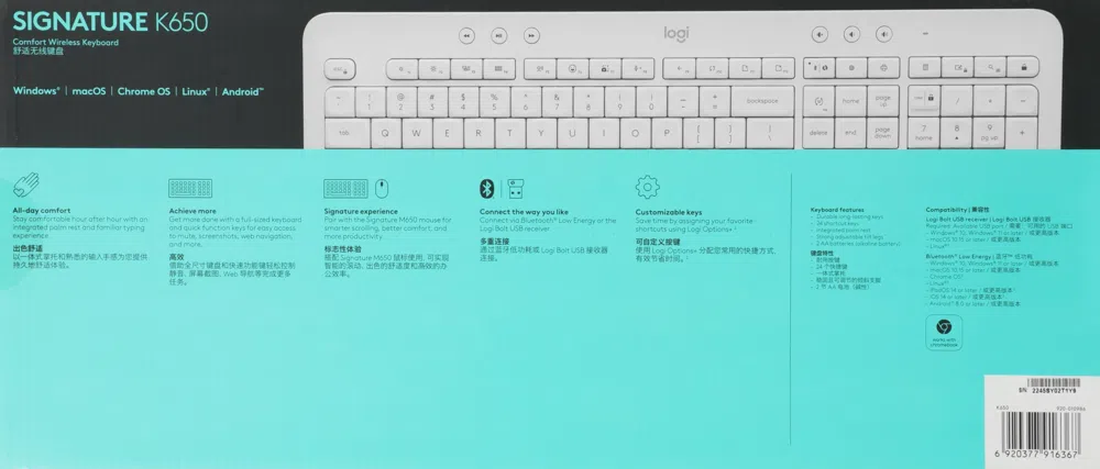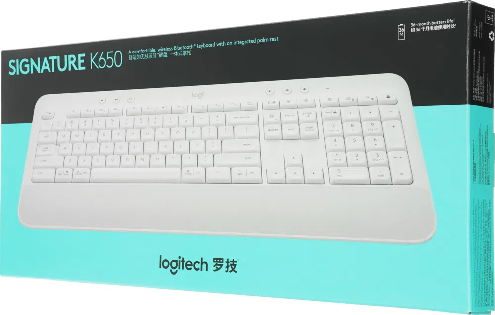 Клавиатура Logitech K650 белый USB беспроводная BT/Radio Multimedia (подставка для запястий) (920-010986)