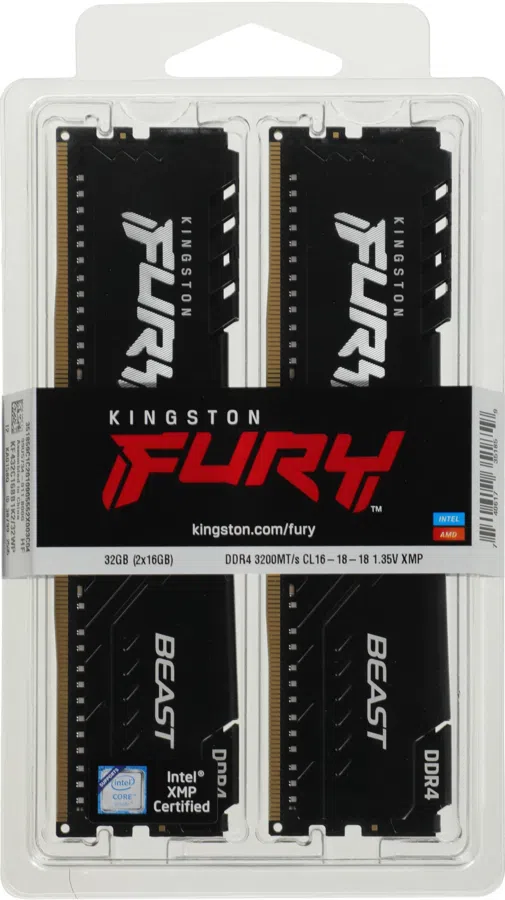 Память DDR4 2x16GB 3200MHz Kingston KF432C16BB1K2/32WP Fury Beast Black RTL Gaming PC4-25600 CL16 DIMM 288-pin 1.35В dual rank с радиатором Ret