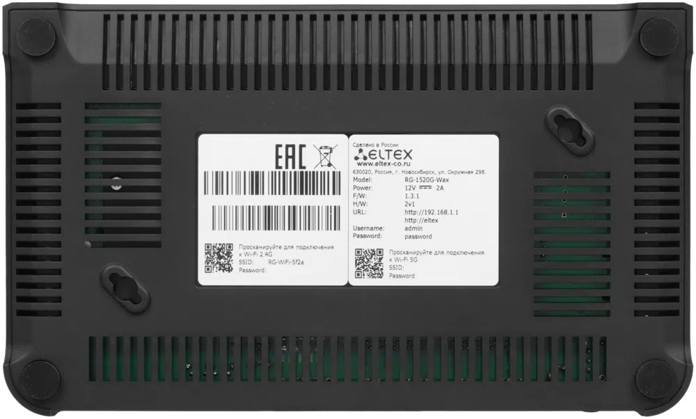 Маршрутизатор Eltex RG-1520G-Wax AX1800 10/100/1000BASE-T черный