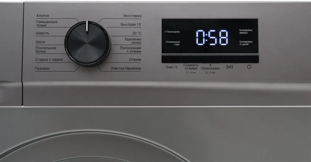 | Программы (полное описание) | Хлопок Смешанные ткани Шерсть Шелк Постельное белье Стирка с паром Пуховик ЭКОСТИРКА Быстрая Удаление пятен Полоскание и отжим Отжим Очистка барабана |