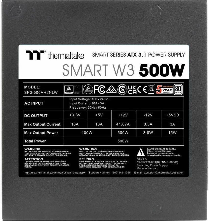 Блок питания Thermaltake ATX 500W Smart W3 Gen.5 80+ white (20+4pin) APFC 120mm fan 4xSATA RTL