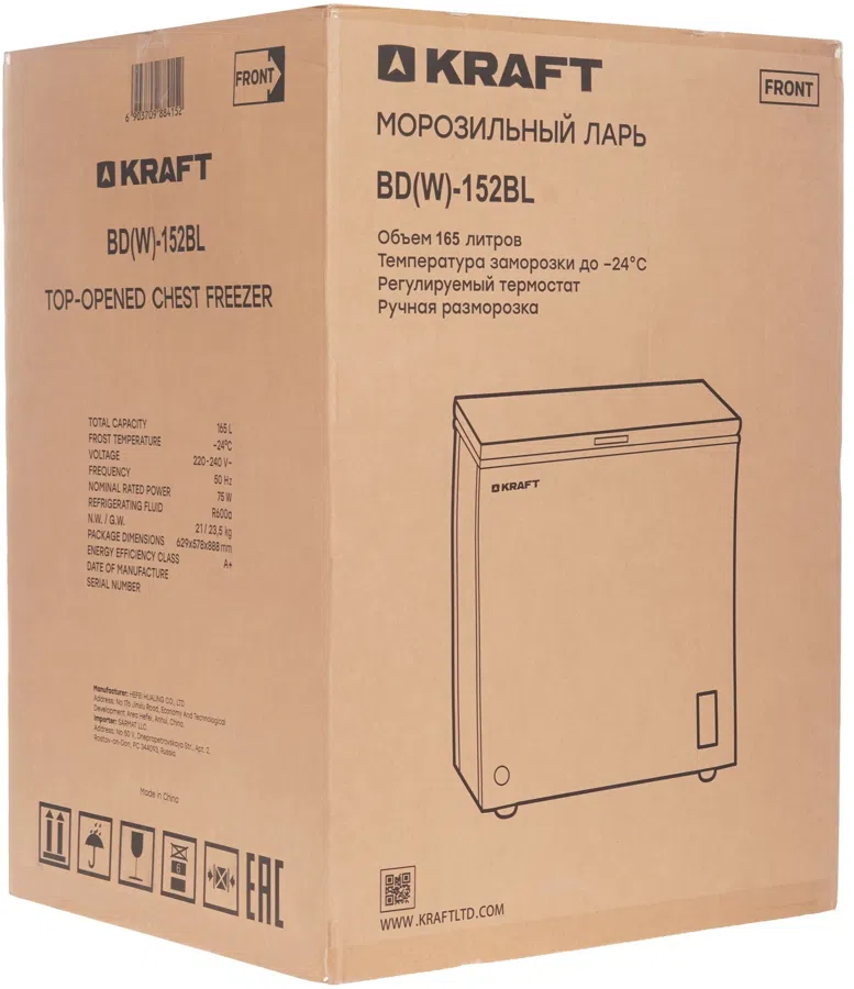 Морозильный ларь Kraft BD (W)-152BL белый 74Вт