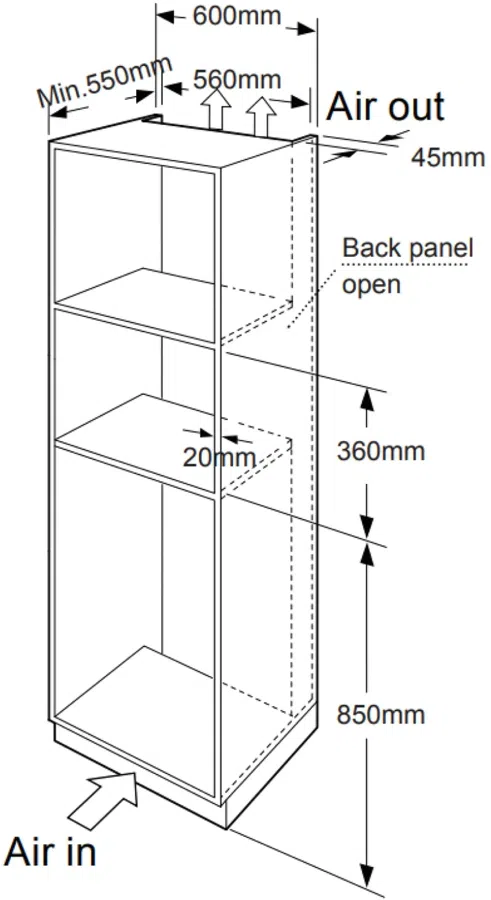 | Размеры для встраивания | 56x36.5x55см |