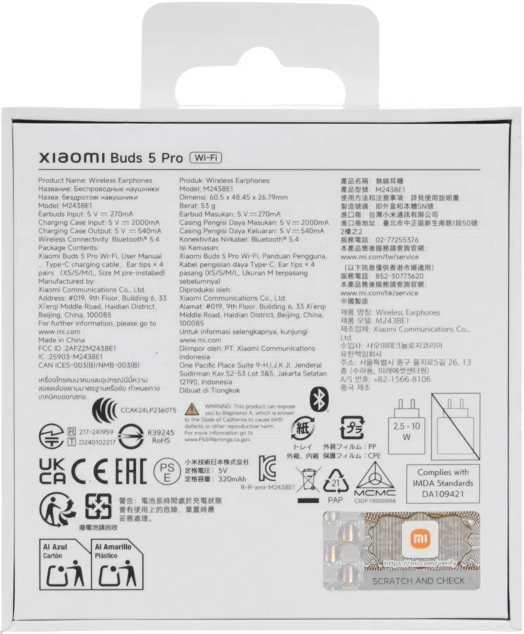Гарнитура внутриканальные Xiaomi Buds 5 Pro WiFi-Black черный беспроводные bluetooth в ушной раковине (BHR9647GL)