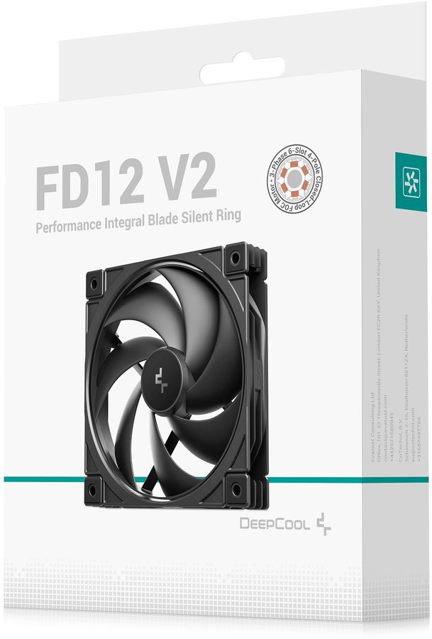 Вентилятор для корпуса Deepcool FD12 V2 120х120x25 черный 4-pin 35.6дБ (R-FD12V2-BKNPN1-G) Ret