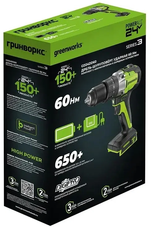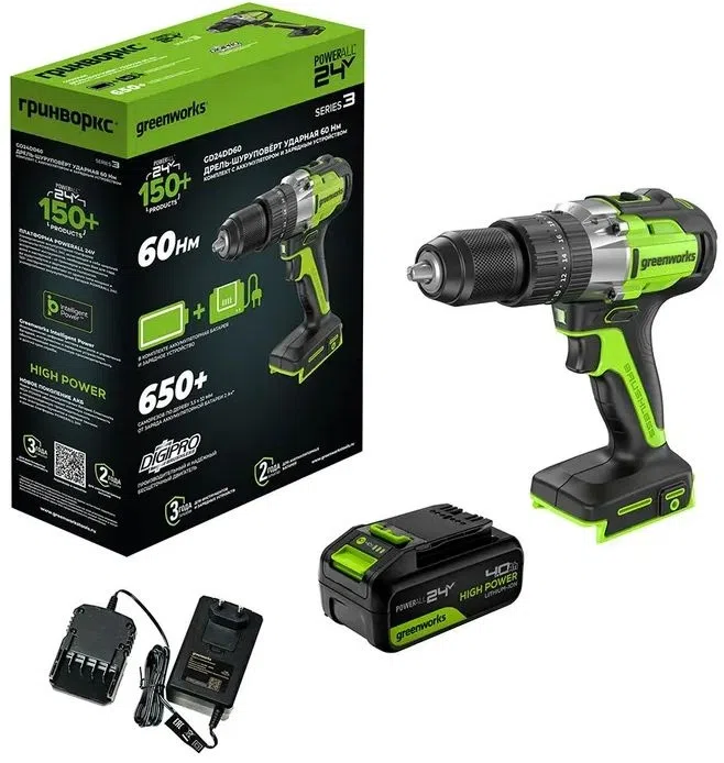 Дрель-шуруповерт Greenworks GD24DD60 аккум. патрон:быстрозажимной (3704107CUB)