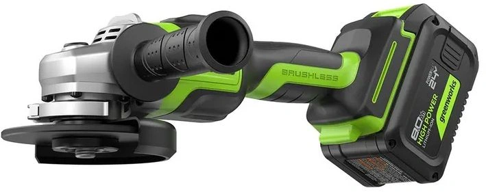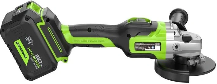 | Комплект поставки | Угловая шлифмашина Greenworks GD24AG,АКБ 8Ач — 1 шт,Быстрое зарядное устройство Greenworks G24C4, 24V, 4А (2946407),Защитный кожух,Боковая рукоятка,Опорный фланец,Зажимная гайка,Ключ,Руководство по эксплуатации,Гарантийный талон,Картонная коробка. |