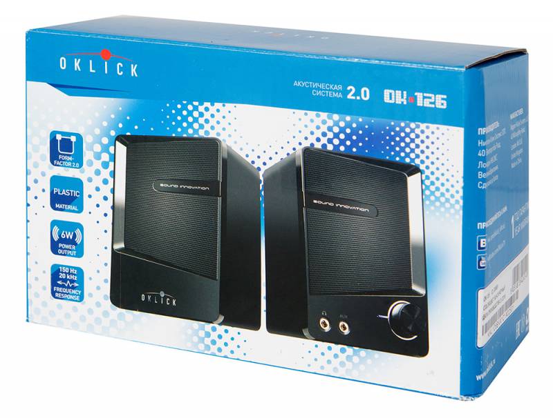 Колонки Оклик OK-126 2.0 черный 6Вт