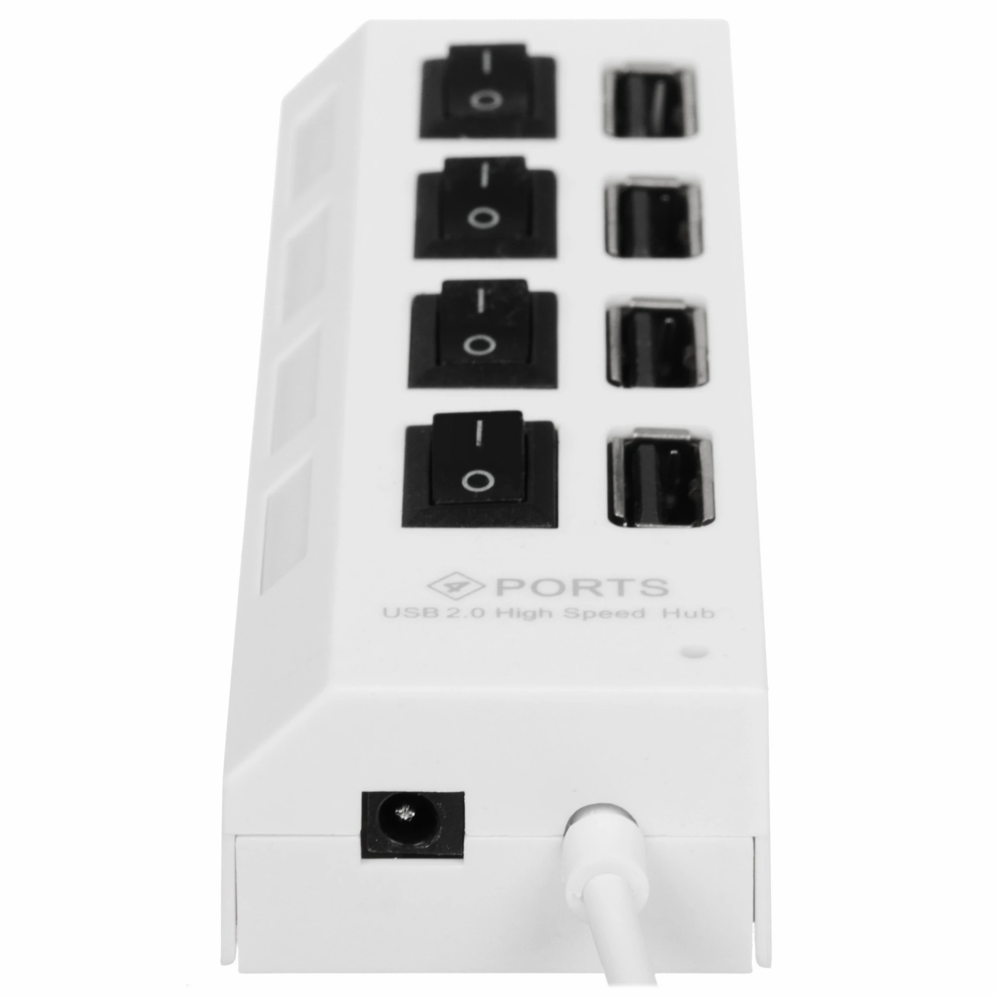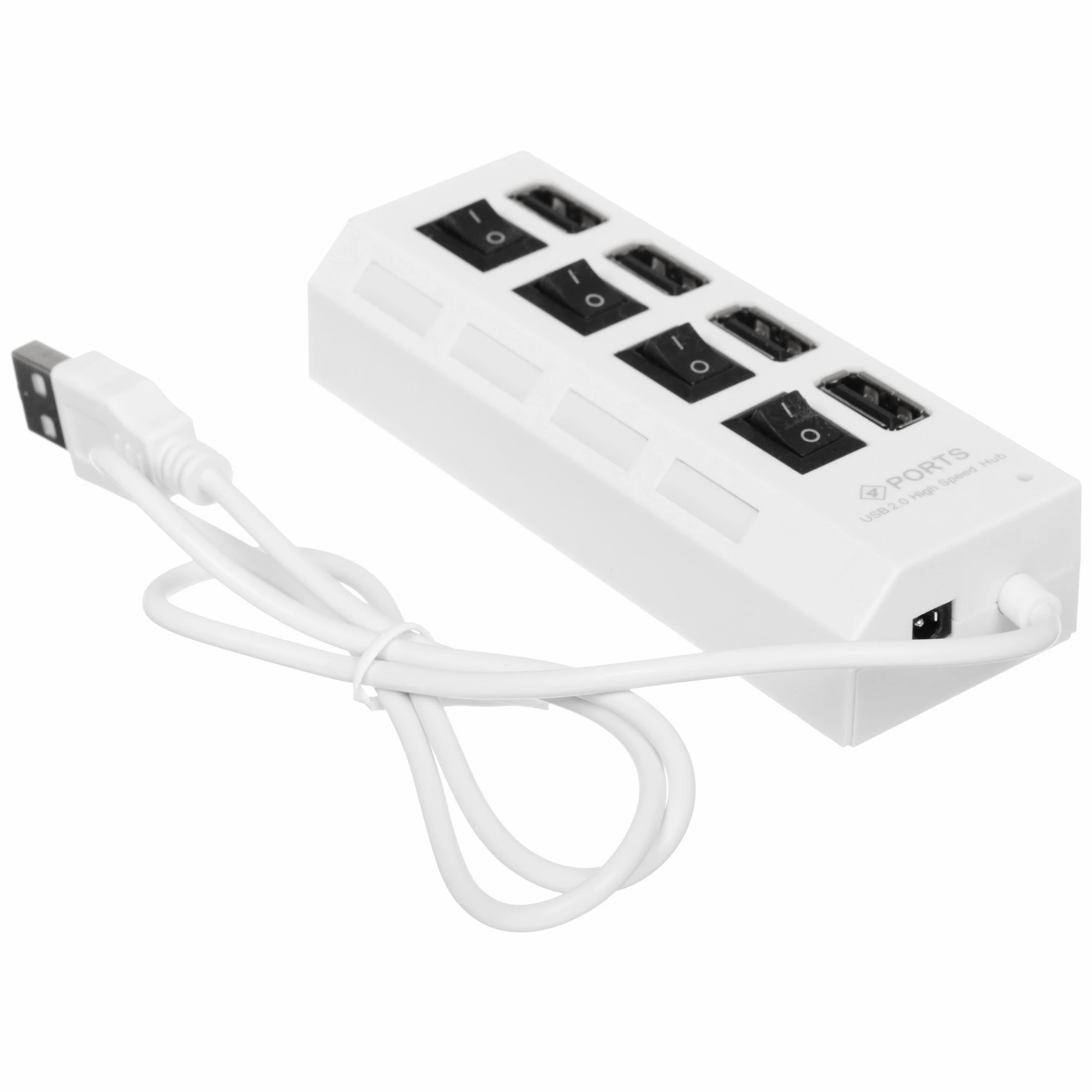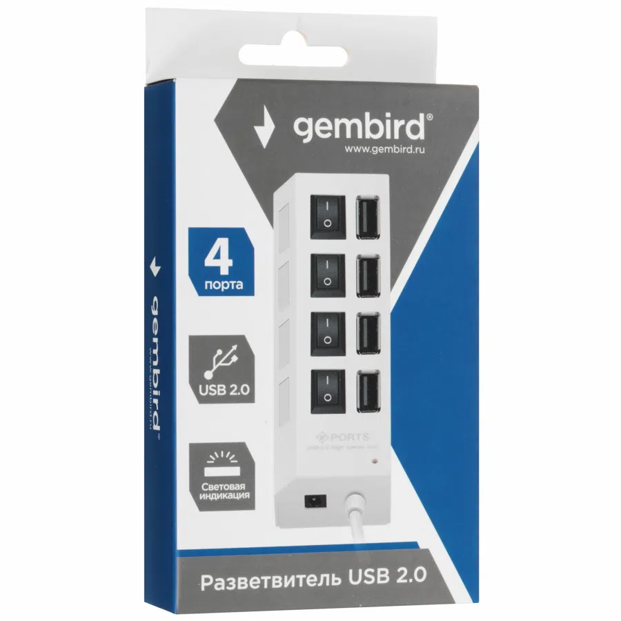 Разветвитель USB2.0 Gembird UHB-243-ADW, 4хUSB, с доп. питанием, подсветка и выключатели, кабель USB 55см, белый, коробка