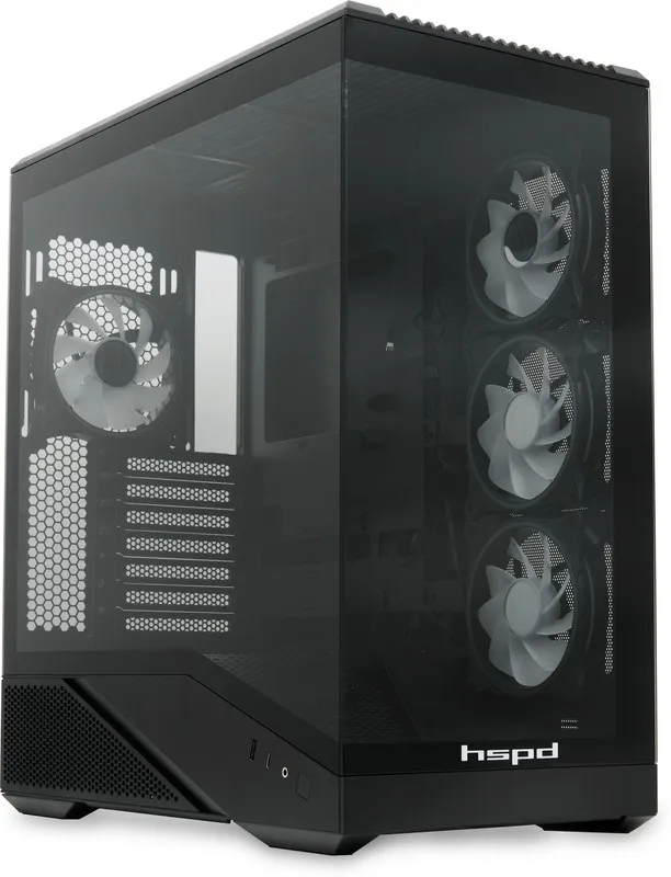 Корпус HSPD F711 Panoramic TG черный без БП ATX 4x120mm ARGB 1xUSB3.0 1xUSB-C audio