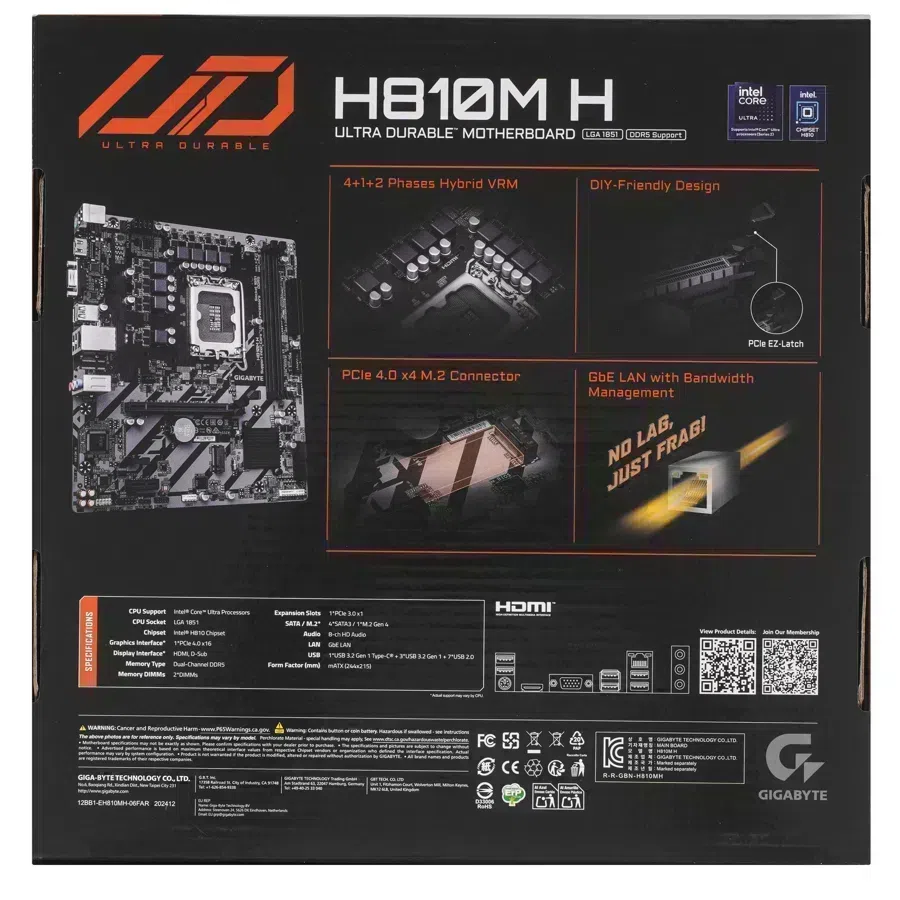 Материнская плата Gigabyte H810M H Soc-1851 Intel H810 2xDDR5 mATX AC`97 8ch(7.1) GbLAN RAID+HDMI+VGA