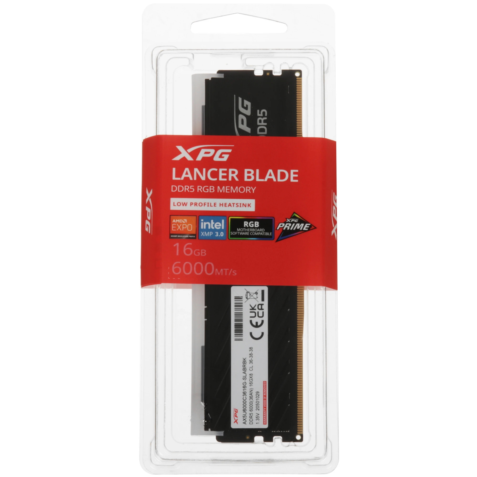 Память DDR5 16GB 6000MHz A-Data AX5U6000C3616G-SLABRBK XPG Lancer Blade RGB RTL Gaming PC5-48000 CL36 DIMM ECC 288-pin 1.35В dual rank с радиатором Ret