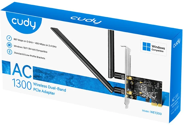 Сетевой адаптер Wi-Fi Cudy WE1300 AC1300 PCI Express (ант.внеш.съем) 2ант.