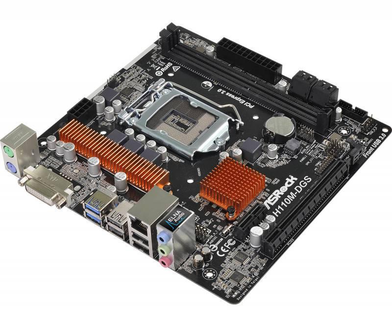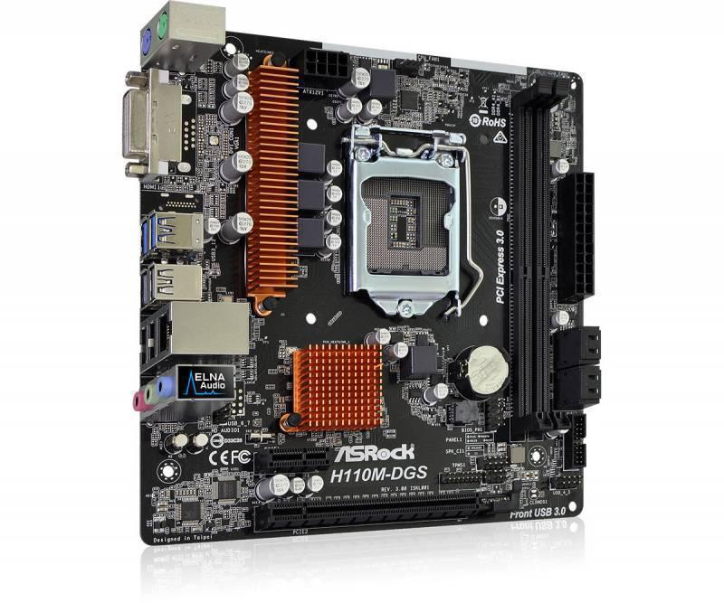 Материнская плата Asrock H110M-DGS R3.0 Soc-1151 Intel H110 2xDDR4 mATX AC`97 8ch(7.1) GbLAN+DVI