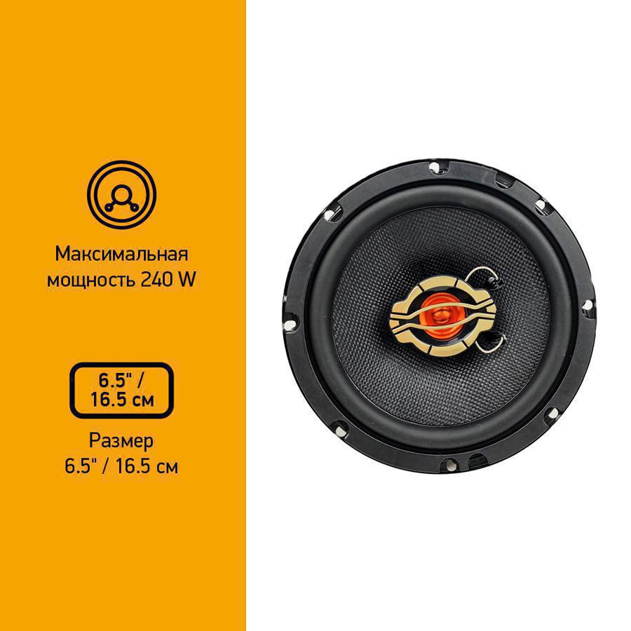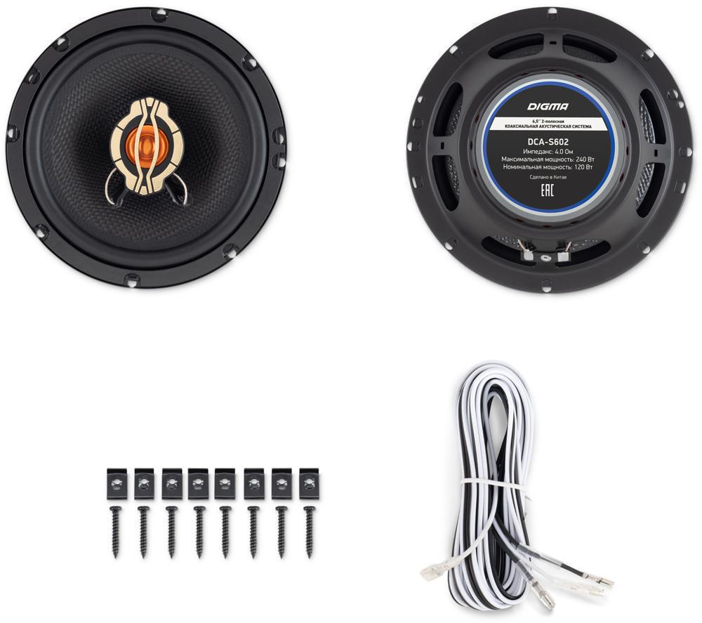 Колонки автомобильные Digma DCA-S602 (без решетки) 240Вт 86дБ 4Ом 16.5см (6 1/2дюйм) (ком.:2кол.) коаксиальные двухполосные