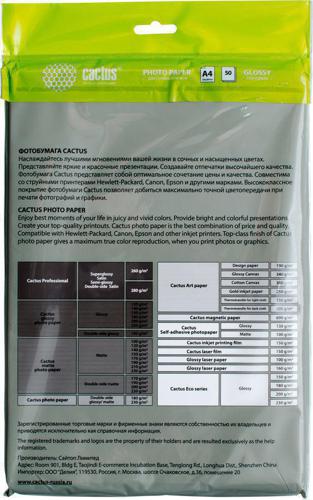 Фотобумага Cactus CS-GA420050ED A4/200г/м2/50л./белый глянцевое для струйной печати