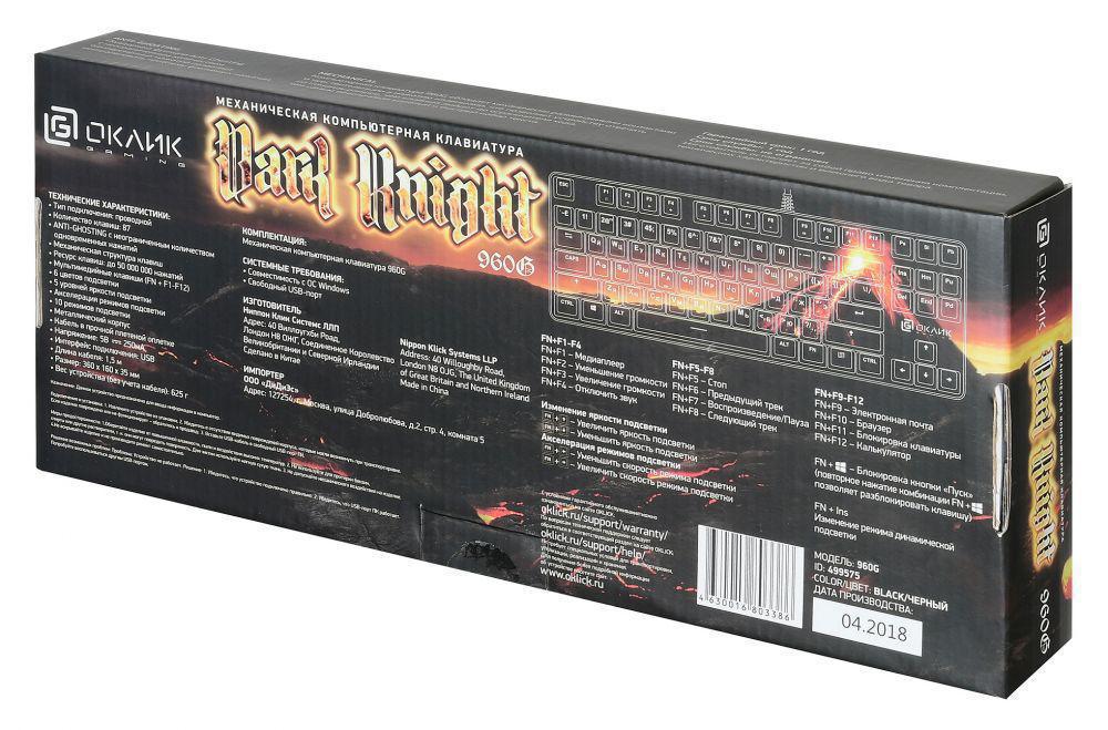 Клавиатура Оклик 960G Dark Knight механическая черный USB Multimedia for gamer
