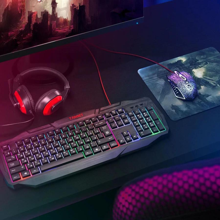 Игровой комплект Defender Target MKP-350 клавиатура + мышь + коврик + гарнитура черный/красный