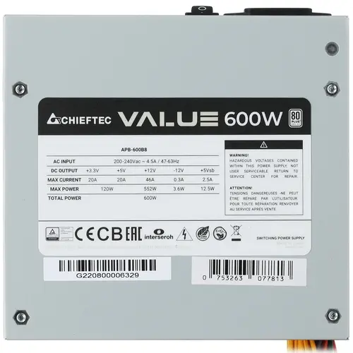 Блок питания Chieftec Value 600W ATX, 80PLUS WHITE, OEM