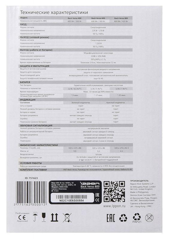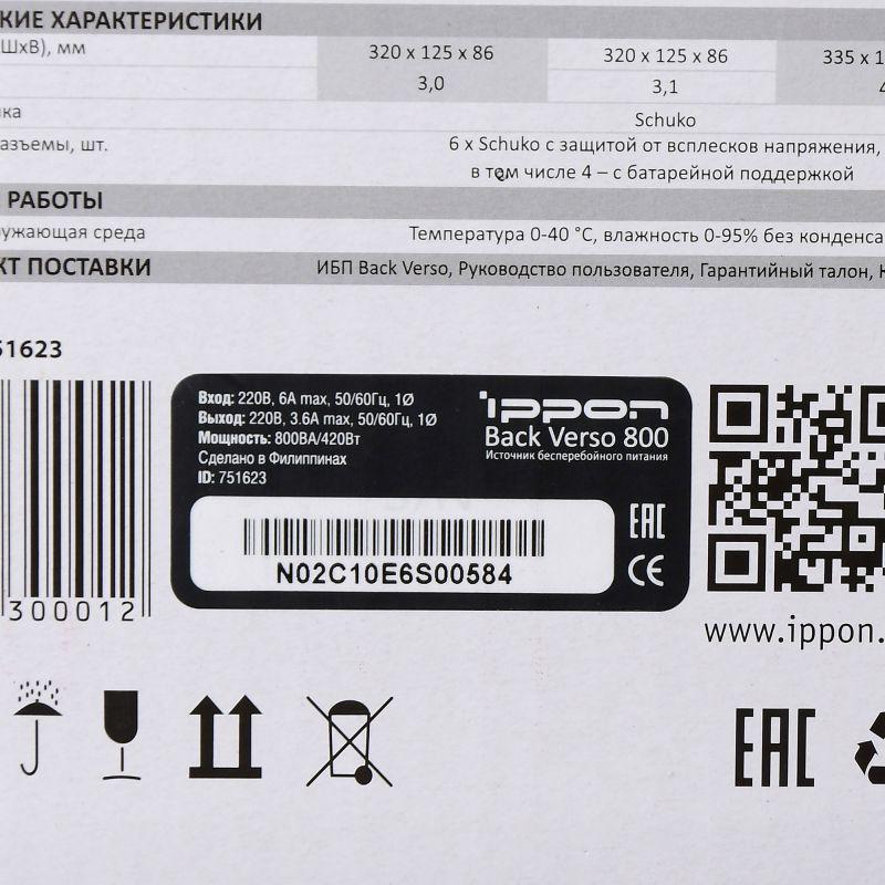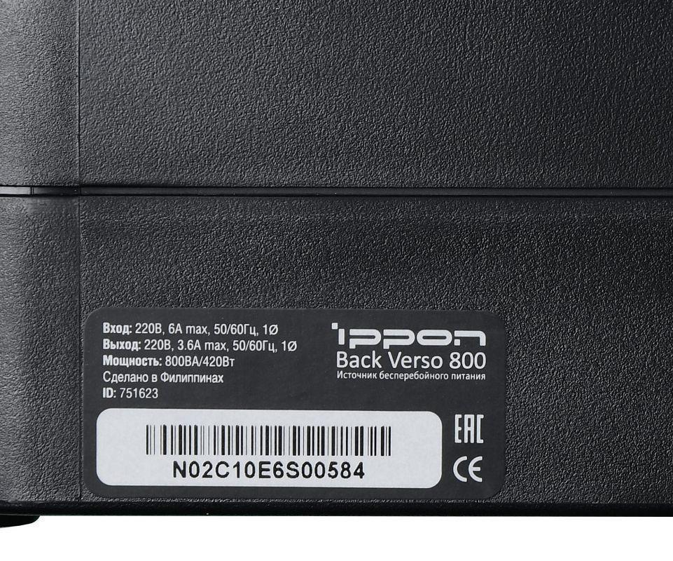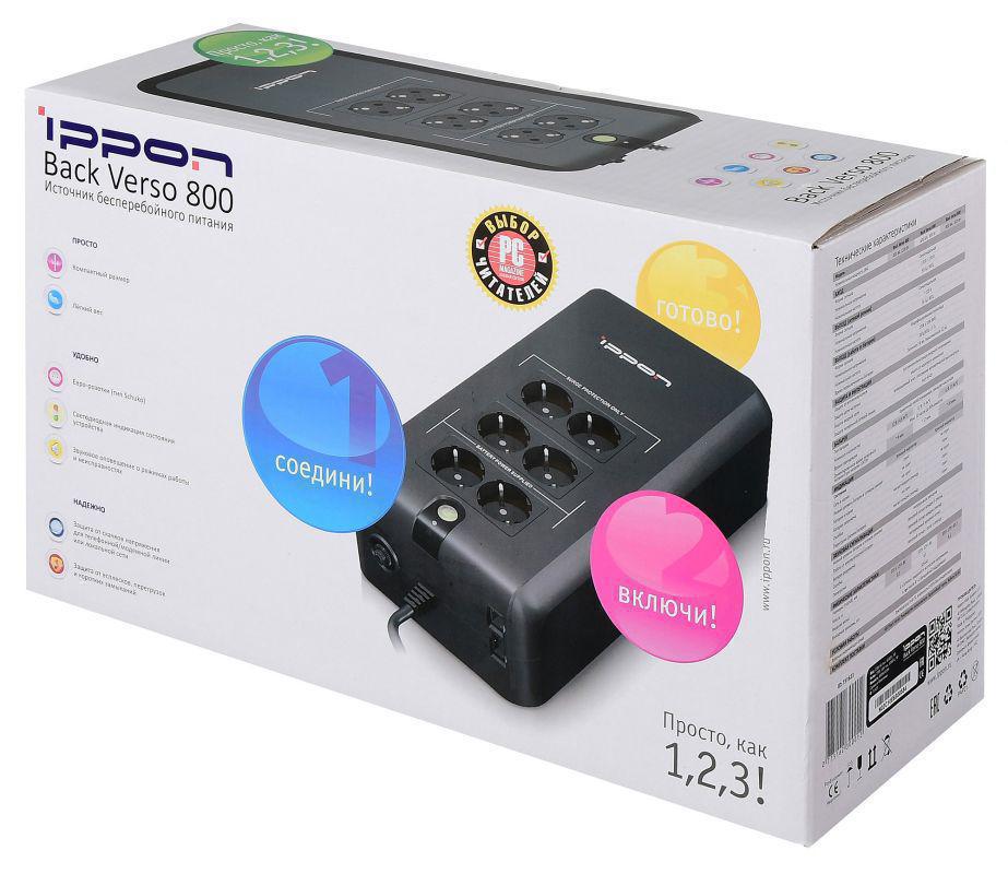 Источник бесперебойного питания Ippon Back Verso 800 420Вт 800ВА черный