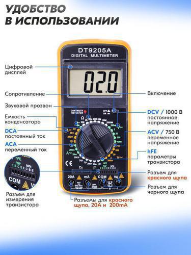 Мультиметр Ресанта DT 9205A цифровой черный/желтый