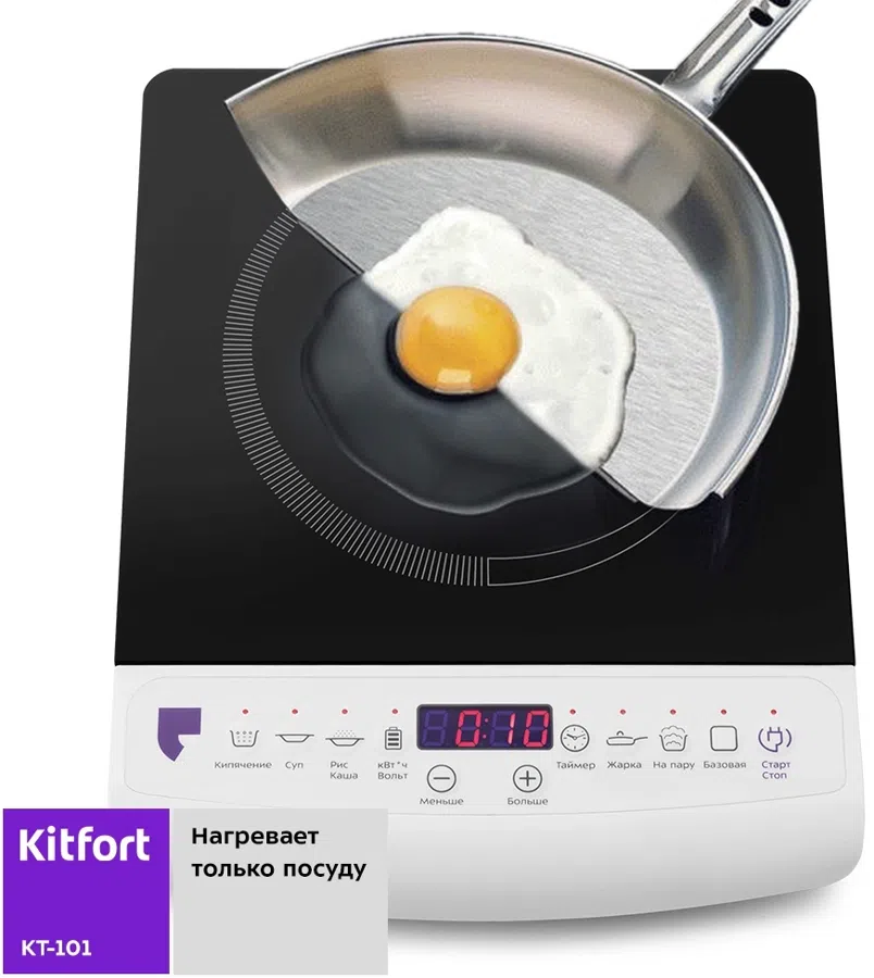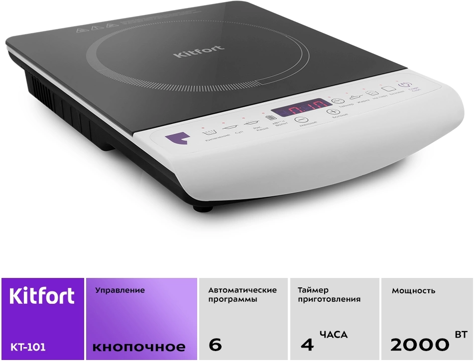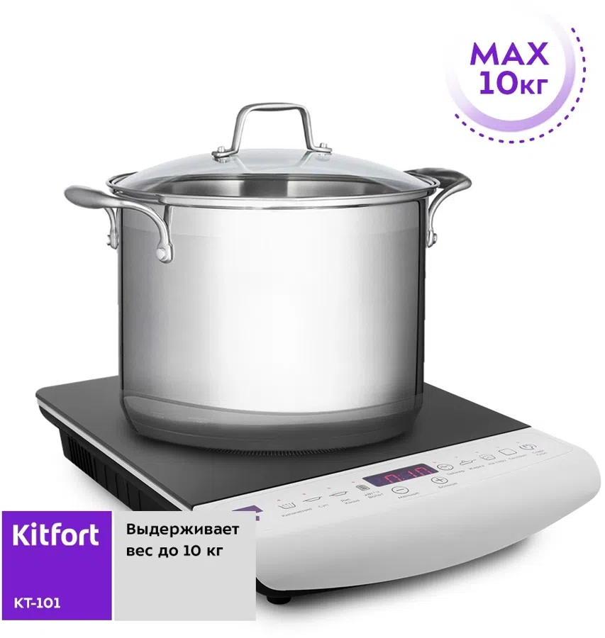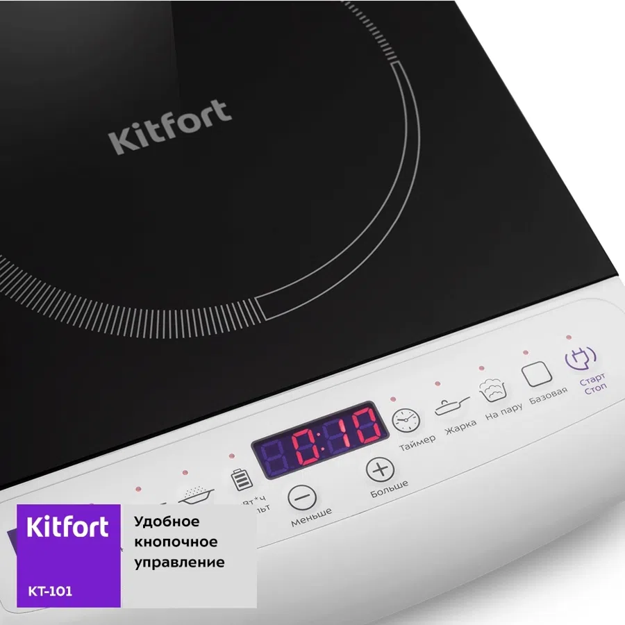 Плита Электрическая Kitfort КТ-101 белый/черный стеклокерамика (настольная)