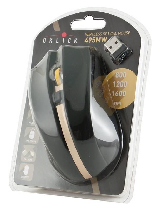 Мышь Оклик 495MW черный/золотистый оптическая 1600dpi беспров. USB для ноутбука 6but (998168)